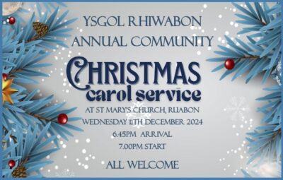 News: Ysgol Rhiwabon Latest News Wed, 11th Dec 2024 Ysgol Rhiwabon have asked to share the following information: Reminder and invite to the Ysgol Rhiwabon Community Christmas Carol Concert on Wednesday December 11th at 7pm. More details on the link below – Christmas Community Carol Concert